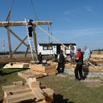 Die Errichtung des Grundgerüstes des Mühlenkörpers.