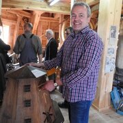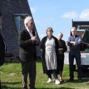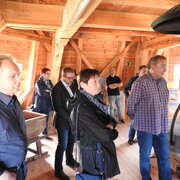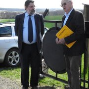 Eine Delegation des Landratsamtes aus unserem Partnerkreis Minden-Lübbecke besuchte die Greiffenberger Mühle und konnte dabei den Fortschritt der Bauarbeiten besichtigen. Landrat Dietmar Schulze und Vereinsvorsitzender Horst Fichtmüller begrüßten die Gäste bei sonnigem Frühlingswetter auf dem Mühlenberg. Die Gäste stellten viele Fragen zu Technik und Geschichte der Mühle und waren begeistert, wie weit der Wiederaufbau der Mühle inzwischen vorangeschritten ist. Landrat Dr. Ralf Niermann trug sich in das Gästebuch der Mühle ein: „Ein großes Kompliment für Ihr enormes Engagement, um Ihre Mühle in großartiger Lage wieder funktionsfähig zu machen.“ Der Landkreis Minden-Lübbecke wird nicht umsonst „Mühlenkreis“ genannt. Die durch den Landkreis führende Westfälische Mühlenstraße umfasst 43 restaurierte Mühlen! Für die Instandhaltung dieser Mühlen betreibt der Landkreis eigens einen Mühlenbauhof. Die Fachleute in Minden kennen natürlich die Mühlentechnik in- und auswendig. Da beim Wiederaufbau der Greiffenberger Mühle sehr viele technische Detailfragen zu lösen sind, entstand bei den Gesprächen die Idee, einen Besuch der Greiffenberger Mühlenfreunde in Minden zu organisieren.