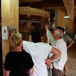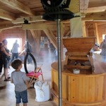 In der Mühle wurde demonstriert, wie gut die installierte Technik funktioniert: der Dieselmotor lief wunderbar und der Elektromotor trieb Königswelle, großes Stirnrad und Mahlgang an, sodass wieder einmal das Müllerhandwerk präsentiert werden konnte.