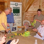 Nach längerem und erfolgreichem Einsatz der MAE-Kräfte Ingo Waligora, Günther Kloß und Michael Schuka, die von Lothar Konrad und Simone Mühle vom Bildungswerk Angermünde betreut wurden, bedankten sich die Mühlenvereinsmitglieder mit einem kleinen Geschenk, einem leckeren Abendessen und einem geselligen Beisammensein.