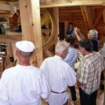 Auch die beiden stationären Motoren in der Mühle, der Dieselmotor KZ26 von den Deutschen Werken Kiel und der Elektromotor der Firma Bergmann Berlin vom Typ MD22/8 wurden in Betrieb gesetzt. Die Besucher konnten miterleben, wie die erst kürzlich eingebaute Königswelle durch die Kraft des Elektromotors in Drehungen versetzt wurde.