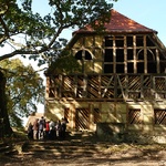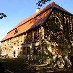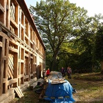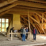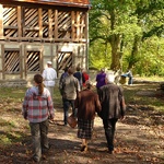 Anschließend besuchten die Gäste auch ein zweites Projekt des Vereins: ein großes Gutshaus aus Fachwerk aus dem 18. Jahrhundert. Ein magischer Ort, der durch seine Lage in einem malerischen Tal und den riesigen Bäumen in der unmittelbaren Nachbarschaft des Gutshauses geprägt ist. Sehenswert ist hier die Lehmfachwerkkonstruktion, die in Projektarbeit auf traditionelle Art wieder hergestellt wird.