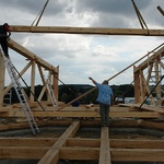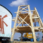Die Errichtung des Grundgerüstes des Mühlenkörpers.