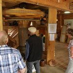 In der Mühle wurde demonstriert, wie gut die installierte Technik funktioniert: der Dieselmotor lief wunderbar und der Elektromotor trieb Königswelle, großes Stirnrad und Mahlgang an, sodass wieder einmal das Müllerhandwerk präsentiert werden konnte.