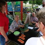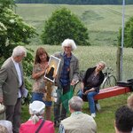 Im Tagesprogramm gab es neben der traditionellen und fröhlichen Versteigerung von Kunst und Trödel mit Andrea und Bert auch ein Konzert des Günterberger Chores, dessen Lieder einige der Zuhörer zum Mitsingen animierten.