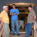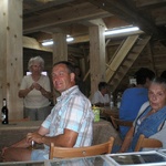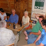 Nach längerem und erfolgreichem Einsatz der MAE-Kräfte Ingo Waligora, Günther Kloß und Michael Schuka, die von Lothar Konrad und Simone Mühle vom Bildungswerk Angermünde betreut wurden, bedankten sich die Mühlenvereinsmitglieder mit einem kleinen Geschenk, einem leckeren Abendessen und einem geselligen Beisammensein.